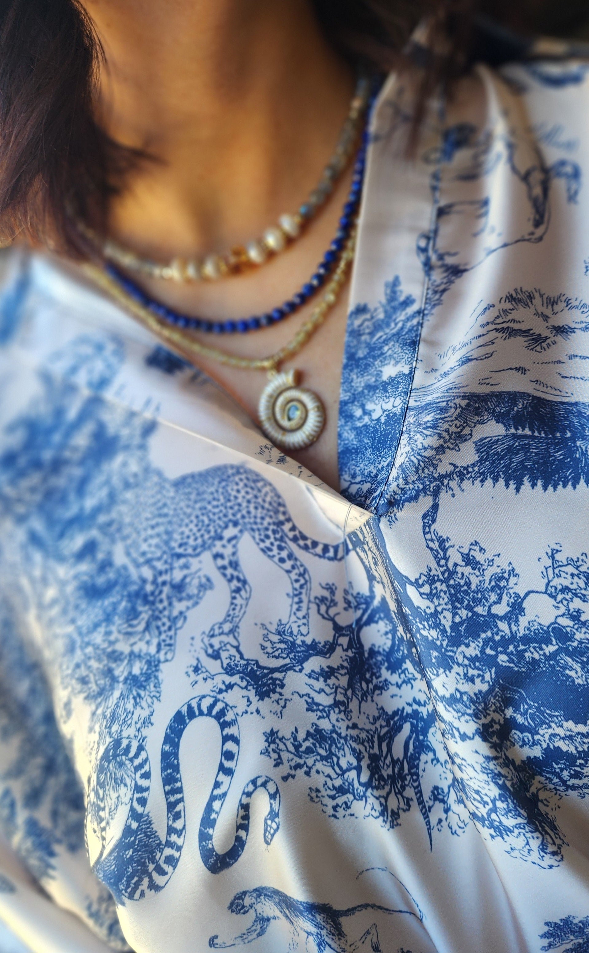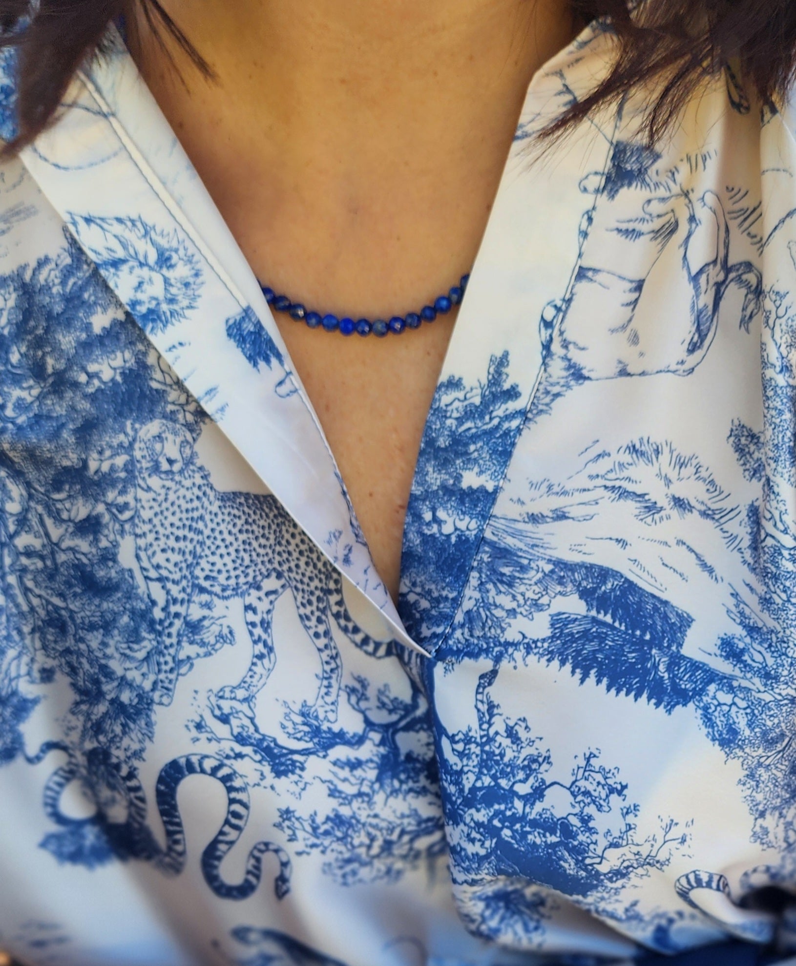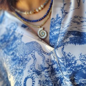 Embrace the radiant energy of the blooming seasons with our Lapis Lazuli necklace, a piece designed to ignite your inner power and illuminate your path. This necklace blends the deep, empowering wisdom of Lapis Lazuli with the vibrant, life-affirming spirit of spring and summer, creating a talisman of strength and clarity for the modern woman. It is the perfect piece for combinable and layering looks. Luxurious style and sophistication, all in one.