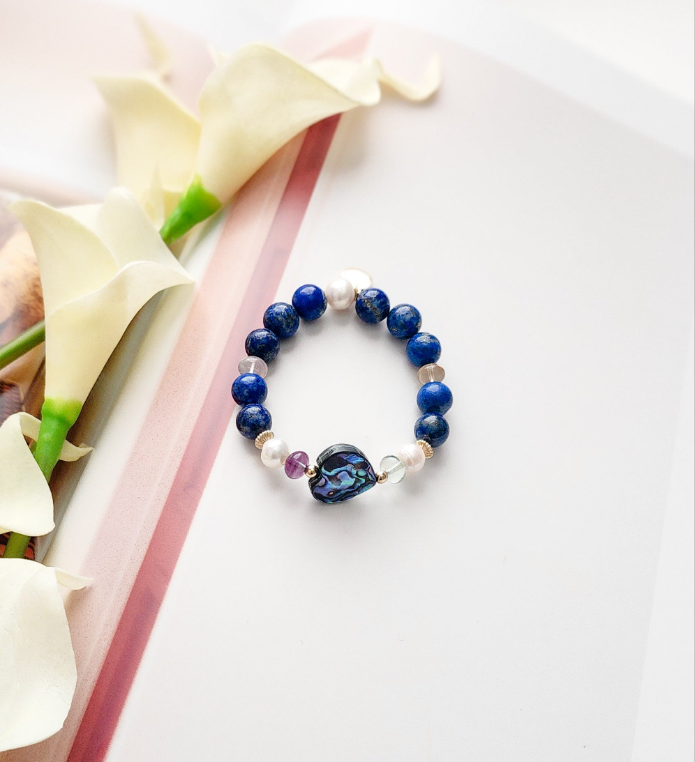 - Designed with AA+ Lapis lazuli, Freshwater Pearls, Avalon and multicolor fluorite stones.
