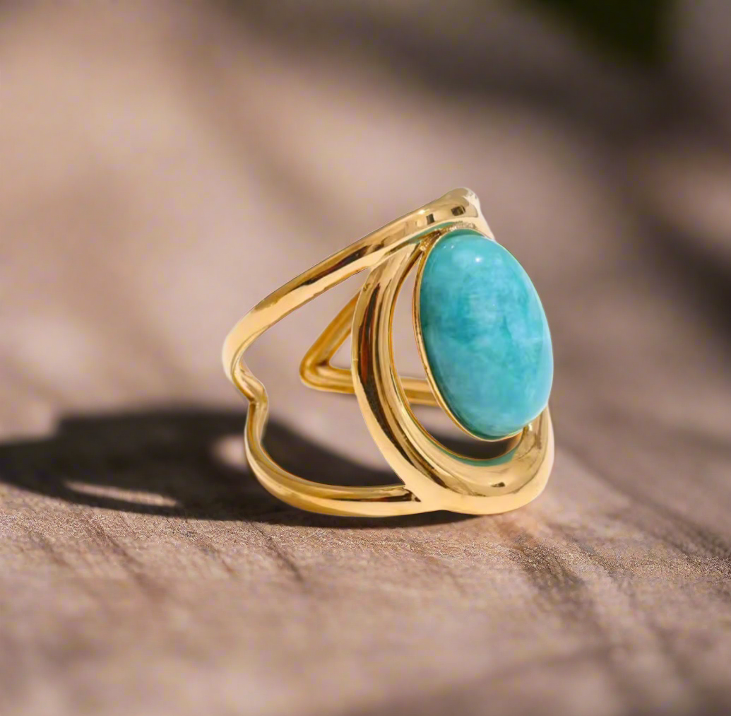 Indulge in the serene beauty of our Amazonite stylish ring. The soothing, sea-green hues of the amazonite gemstone evoke feelings of peace and balance. Crafted with a sleek stainless steel band, this ring offers exceptional durability and a modern aesthetic. Enjoy the convenience of an adjustable design, making this ring a comfortable and versatile addition to any jewelry collection. Whether you’re dressing up or keeping it casual, this ring is the perfect accessory.