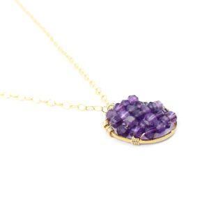 Expect heads to turn when you wear this eye catching purple pendant. This piece features a beautiful tiny faceted Amethyst gemstone wrapped in gold-filled wire. Perfect to wear a stand-alone piece or pair it with any of our pieces to complete the look.