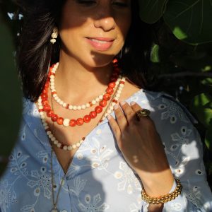 Elevate your style with our Essence of the Sea necklace, featuring red coral beads that radiate calming energy and timeless elegance. The bold yet organic design makes it a perfect summer essential, effortlessly complementing both casual and elegant looks. Whether you’re embracing a breezy beach day or elevating an evening ensemble, this timeless accessory brings the essence of the ocean to your style.