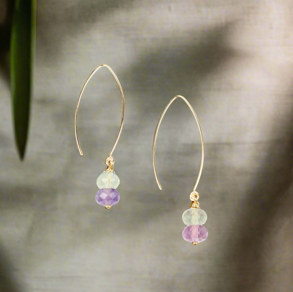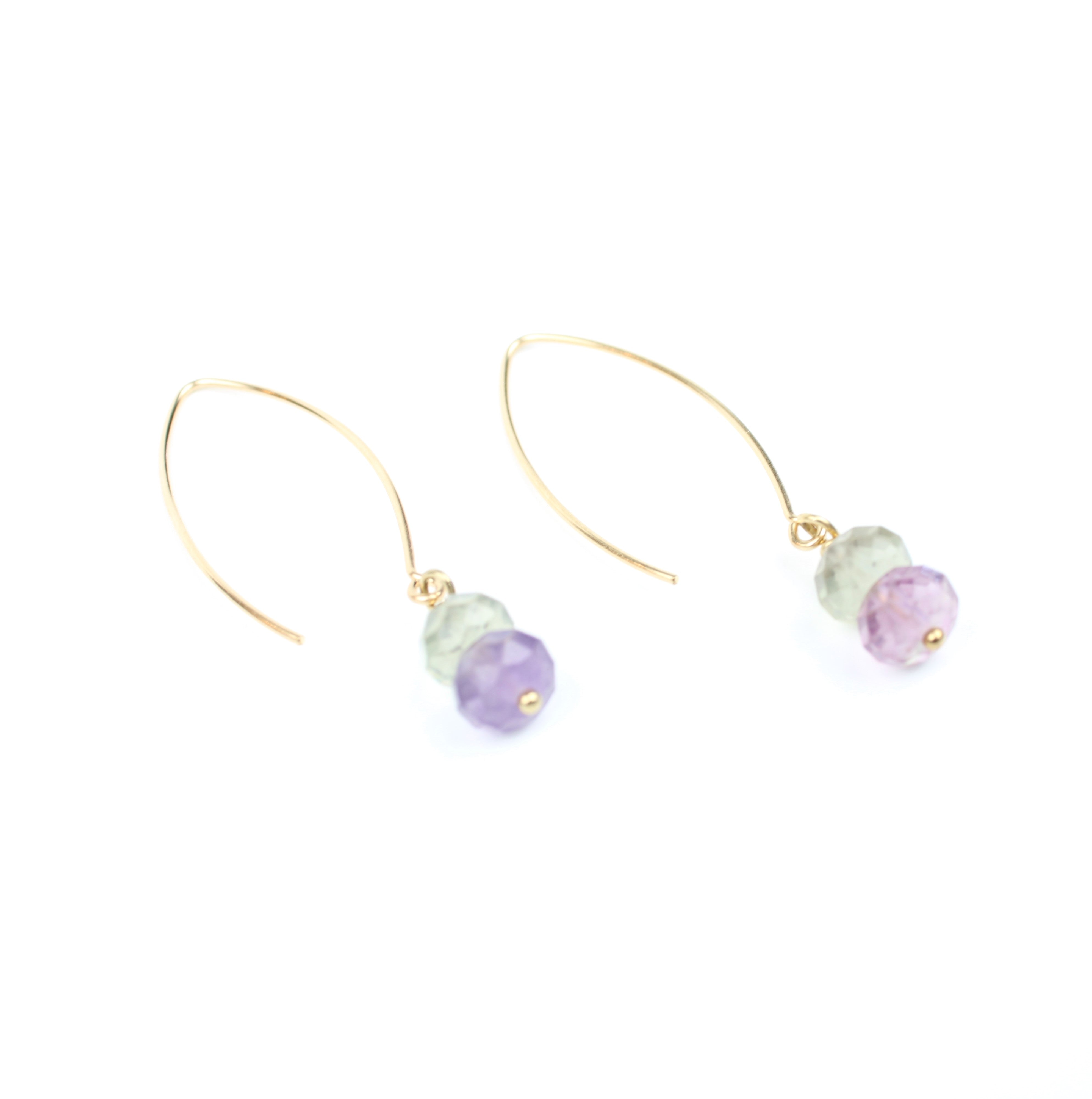 Versatile and dainty gold earrings is sure to become one of your go-tos in your accessories collection. Feature a lovely rainbow faceted Fluorite crystals that catch the light beautifully and add chic movement when worn. Pair them with our Dainty Fluorite Necklace to complete your look.