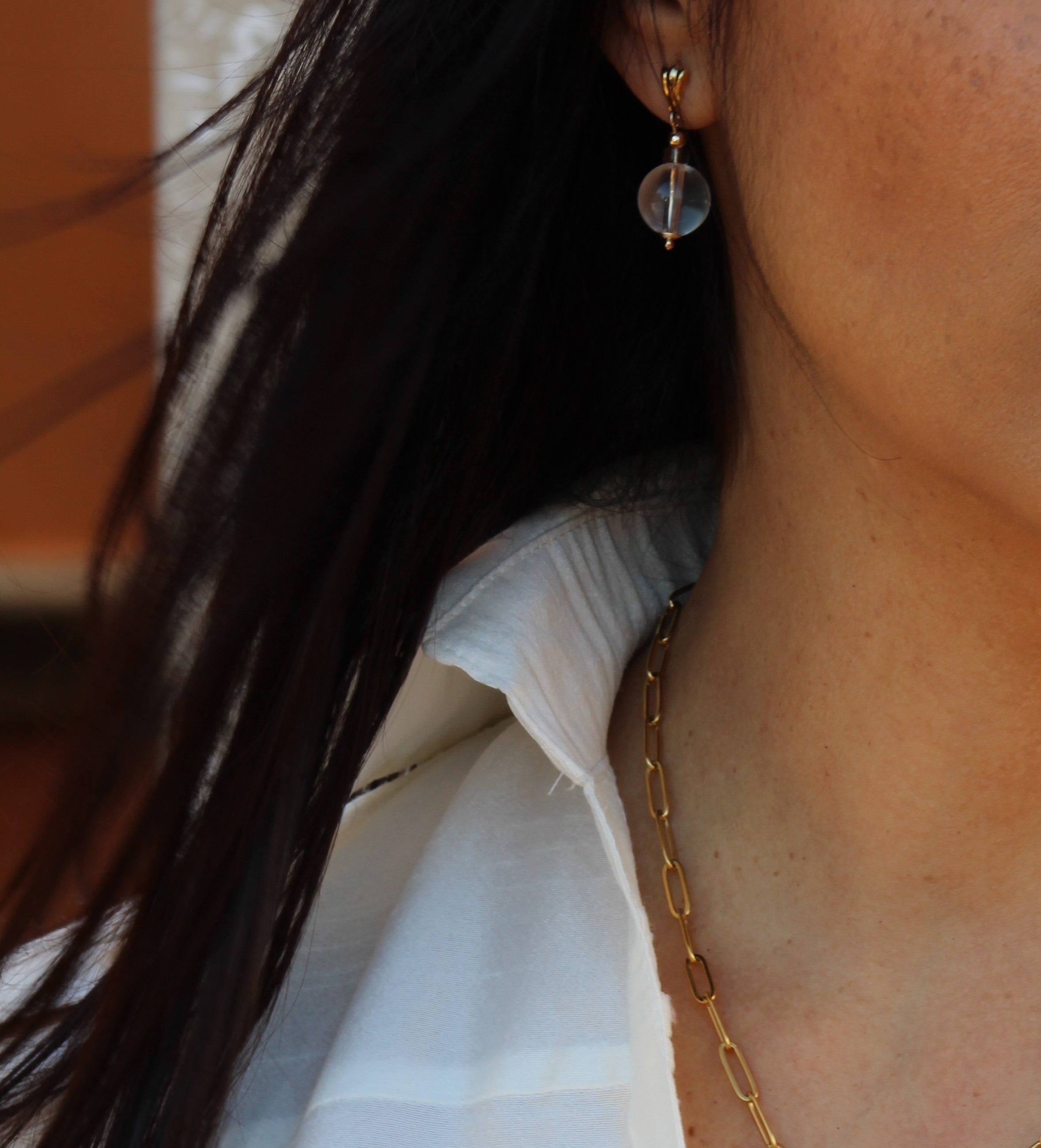 Bold yet minimal-chic drop earrings, we know you’ll love this confidently chic clear crystal quartz beaded earrings, with a rare natural ice obsidian and gold filled accents. Perfect to create a unique and personalize touch.