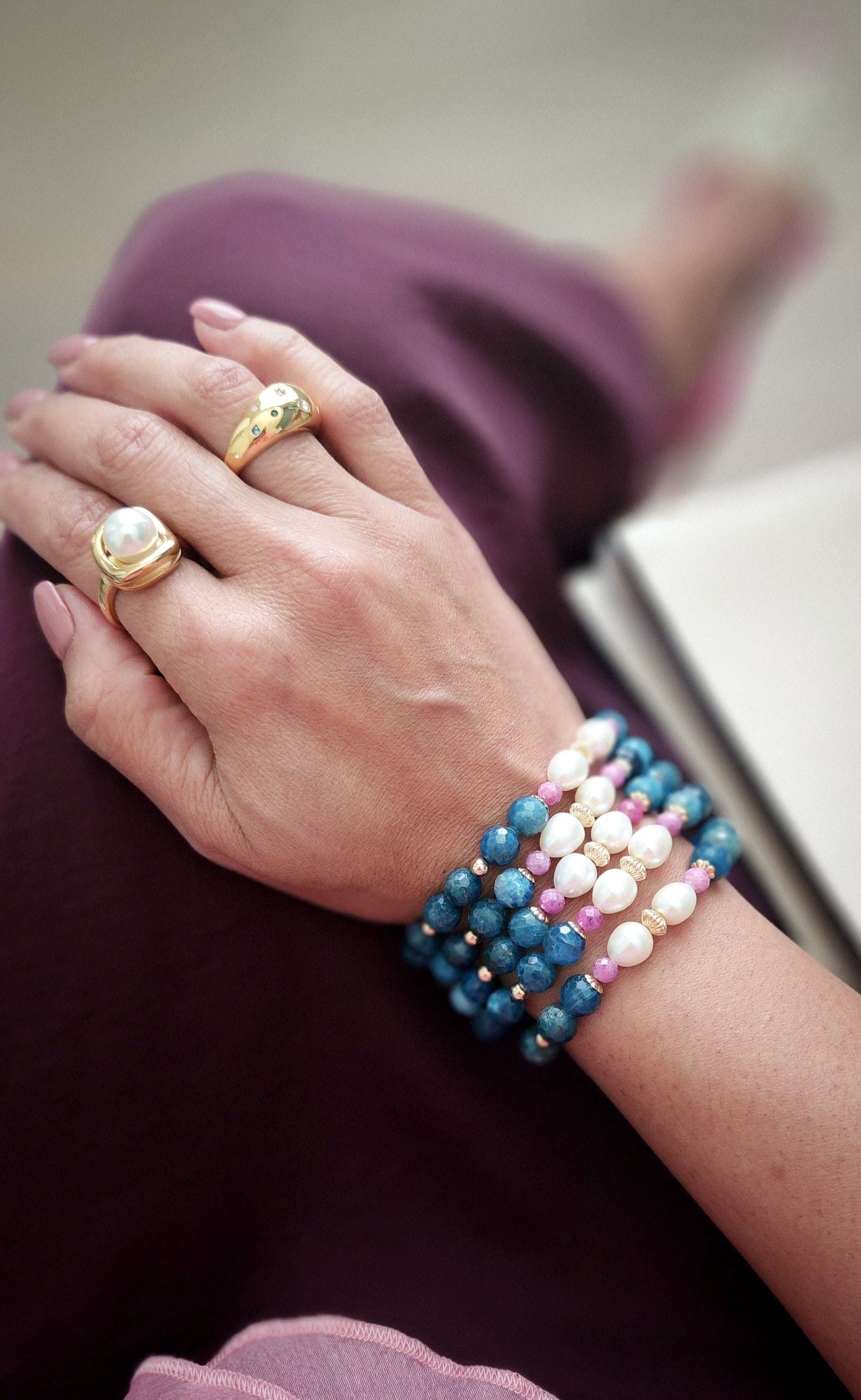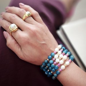 It’s inspiring heightens your intuition and will empower you. Our stunning gemstone bracelet, where elegance meets brilliance. This exquisite piece features vibrant apatite, lustrous freshwater pearls, and dazzling rubies, all meticulously set in a chic design. Perfect for adding a touch of sophistication to any outfit, this bracelet is a true testament to timeless style and radiant beauty. Adorn your wrist with a blend of luxury – it’s the ultimate accessory for those who appreciate the finer things in life.