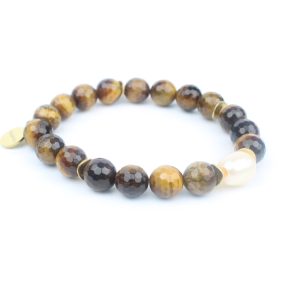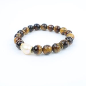 - Designed with AA+ Tyger Eye gemstones, Pearl and Gold Vermeil accents.