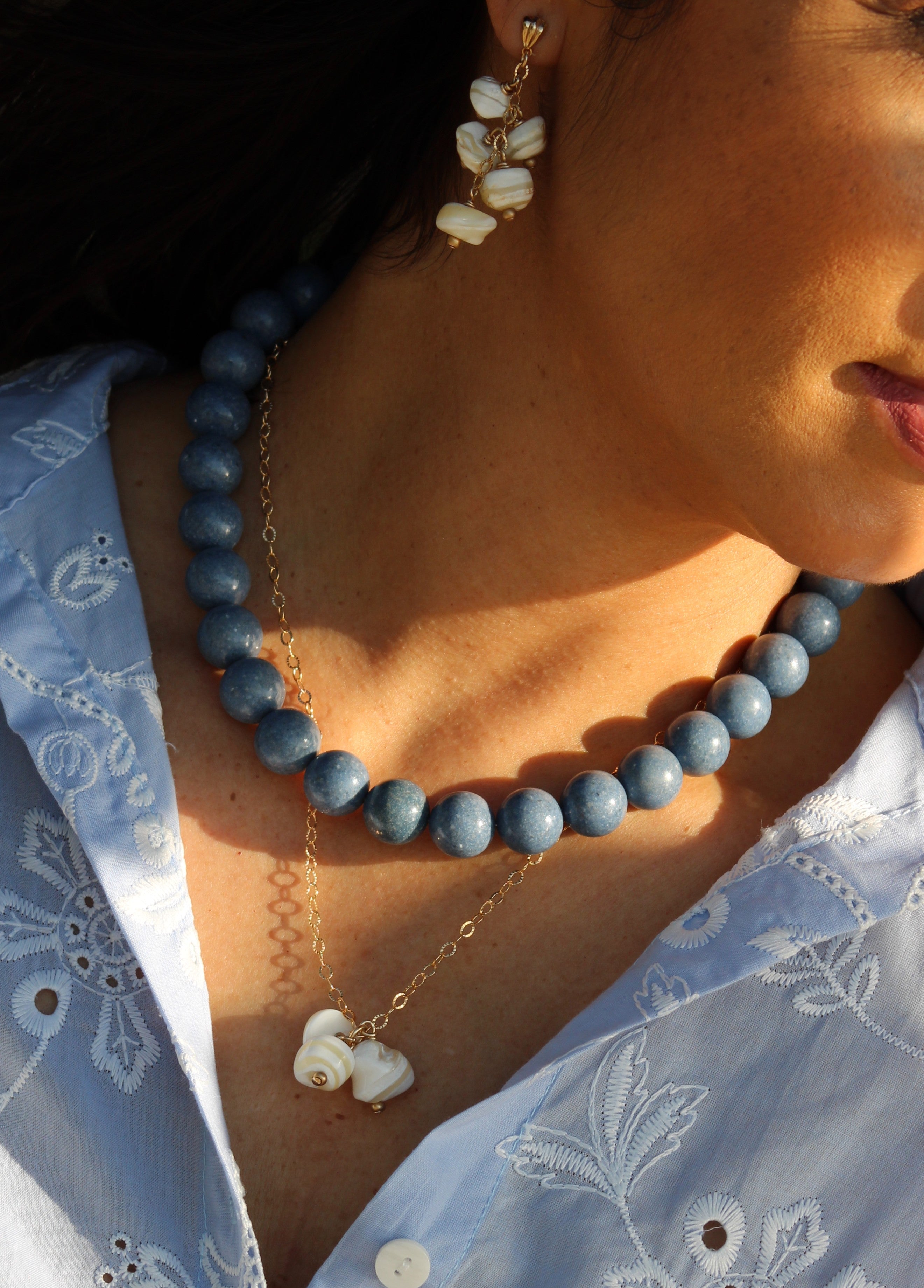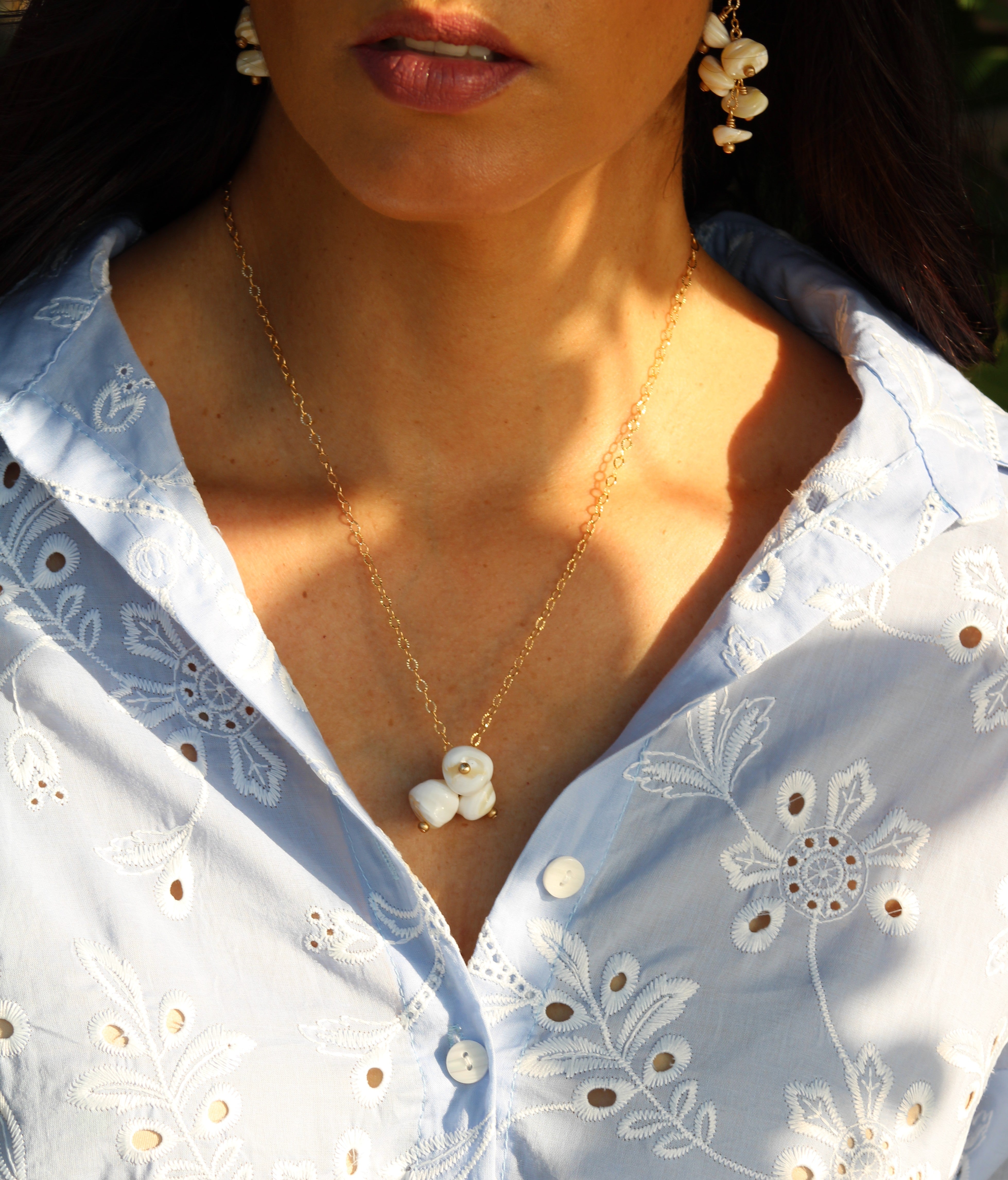 Own your brilliance. Shine like the ocean waves. Inspired by the serene glow of ocean waves, these exquisite earrings feature luminous white Mother of Pearl, delicately set in shimmering gold, reflecting the beauty of sunlit shores.