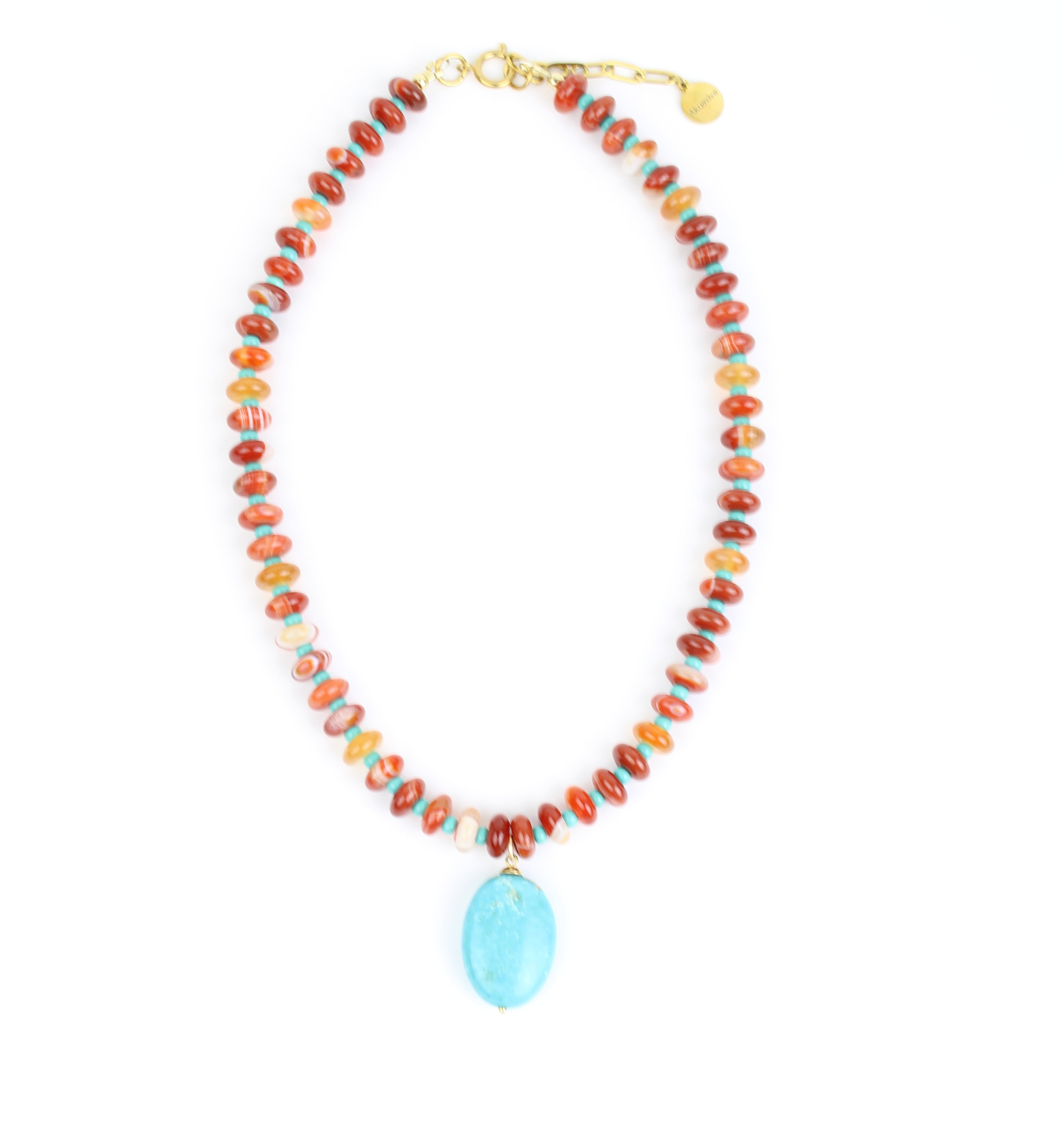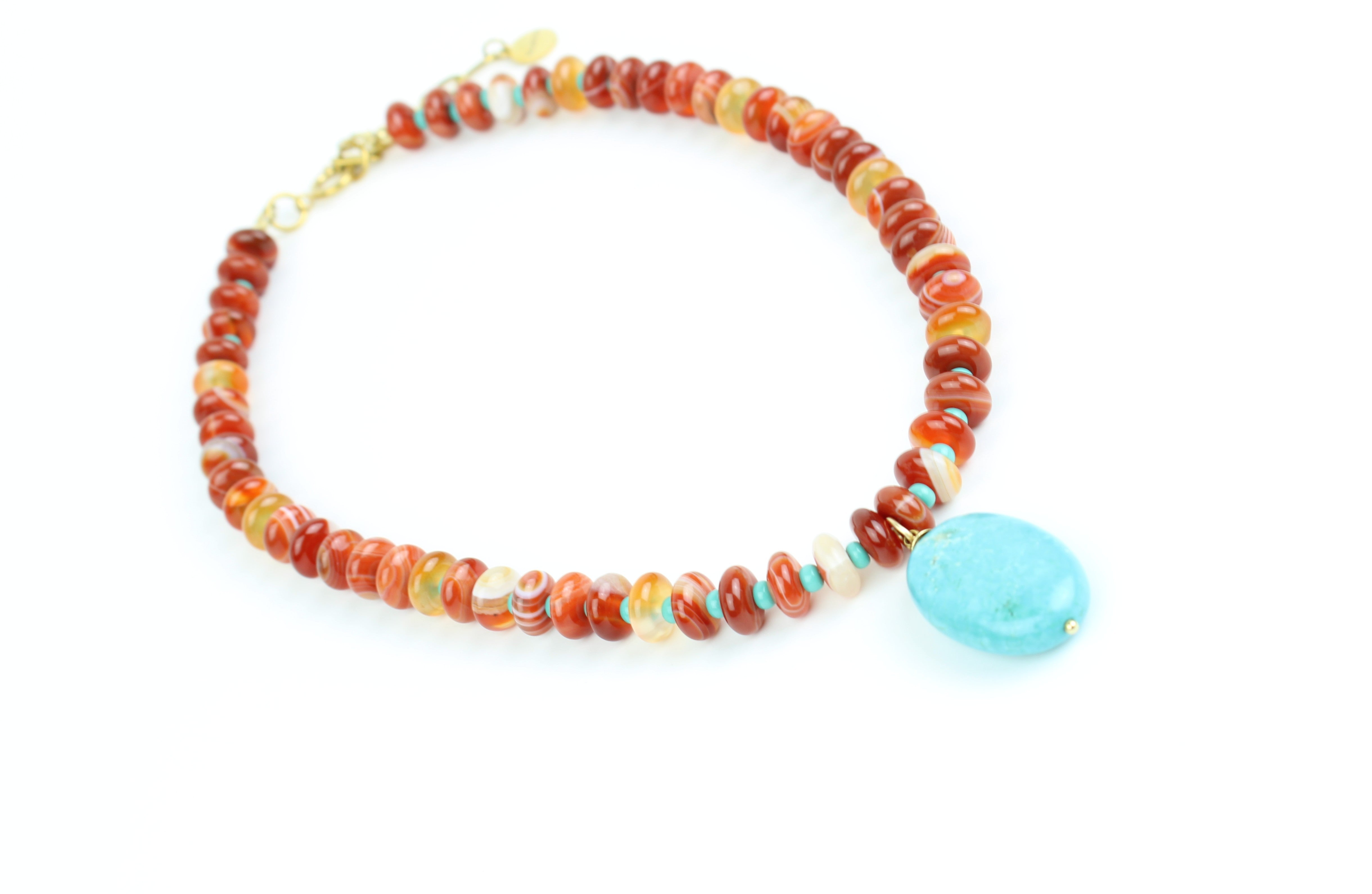 - Designed with Agate, Turquoise pendant and seed beads.