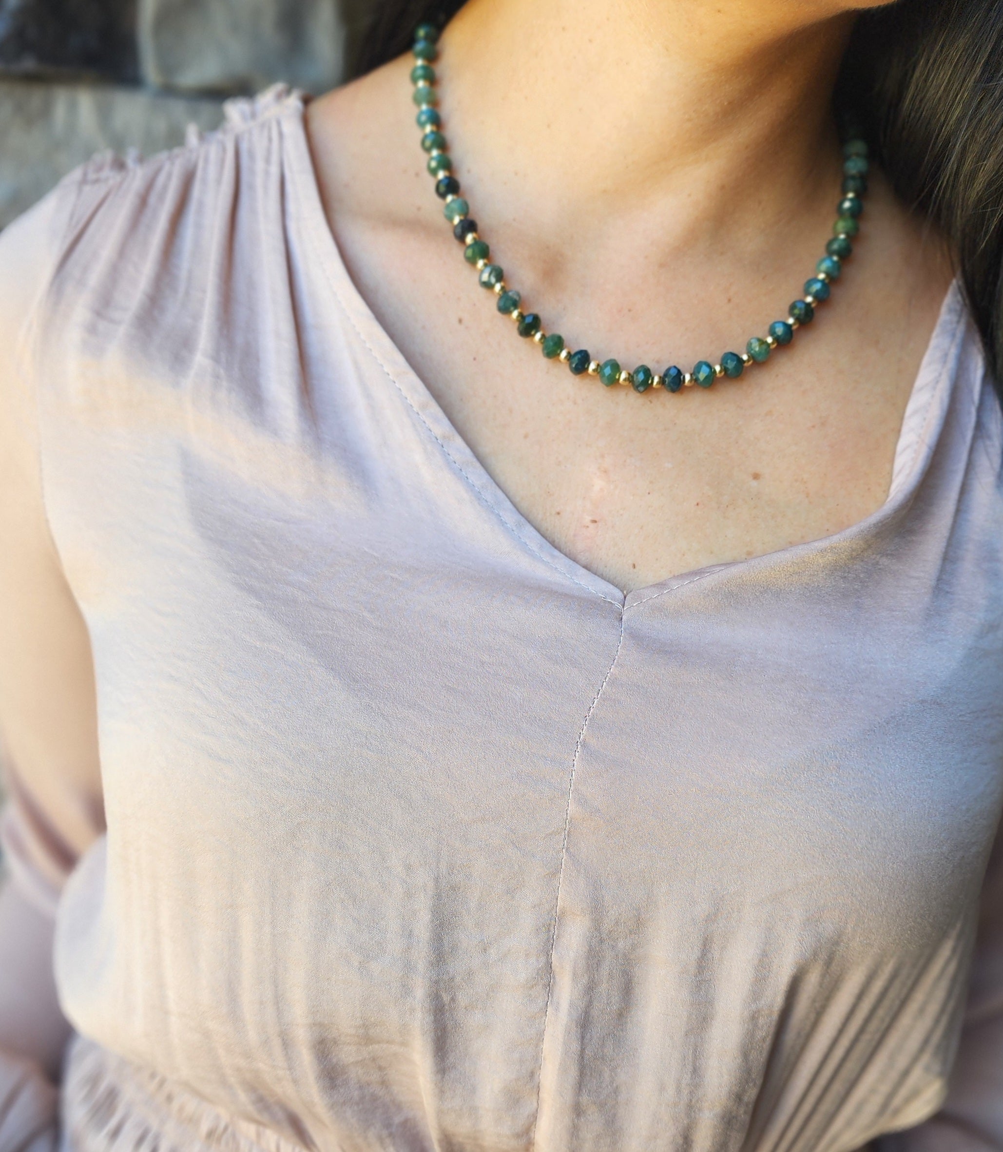 Handcrafted with intention, this necklace features a luminous green agate stone known for its calming energy and connection to nature. Wear it as a reminder to stay rooted in your truth, and open to transformation.
