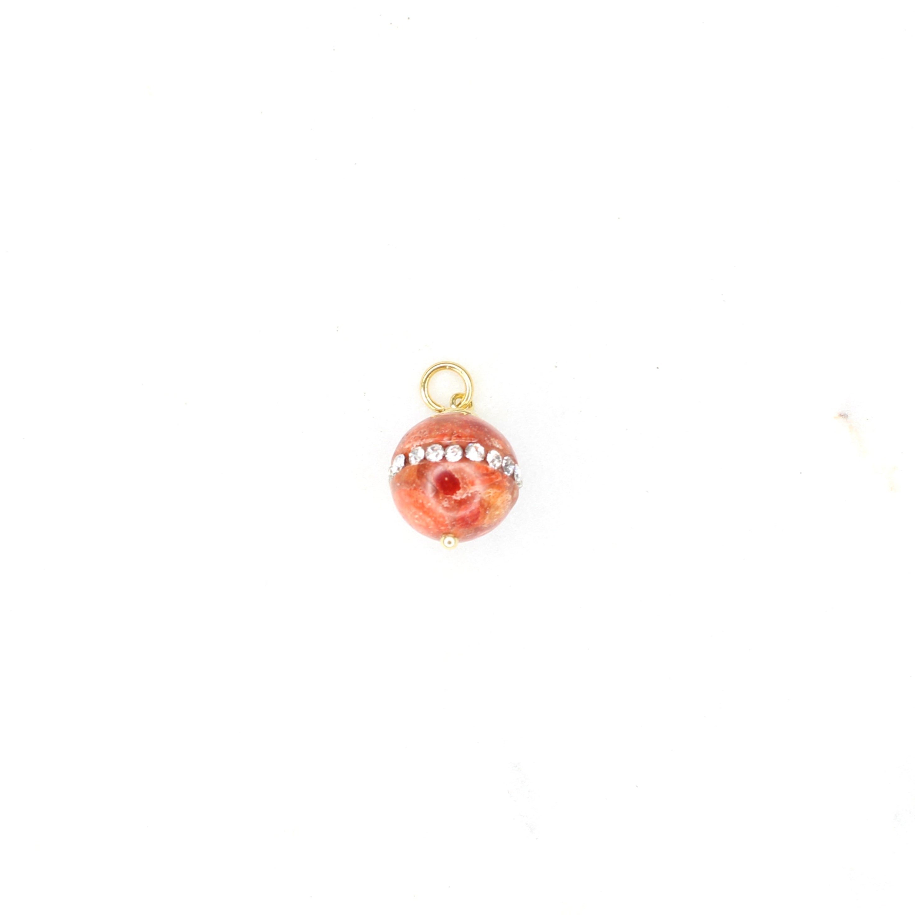 - Natural Orange Red Sponge Coral 14mm round bead with sparkling rhinestone.
